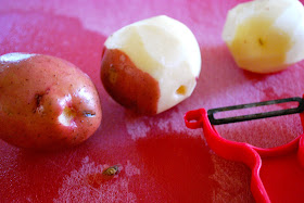 I like to cook the potatoes before adding them to the stock. Peel the potatoes and make sure that you remove the potato eyes using your vegetable peeler. (if your vegetable peeler does not have an eye remover...then it is not a respectful vegetable peeler. Sorry).